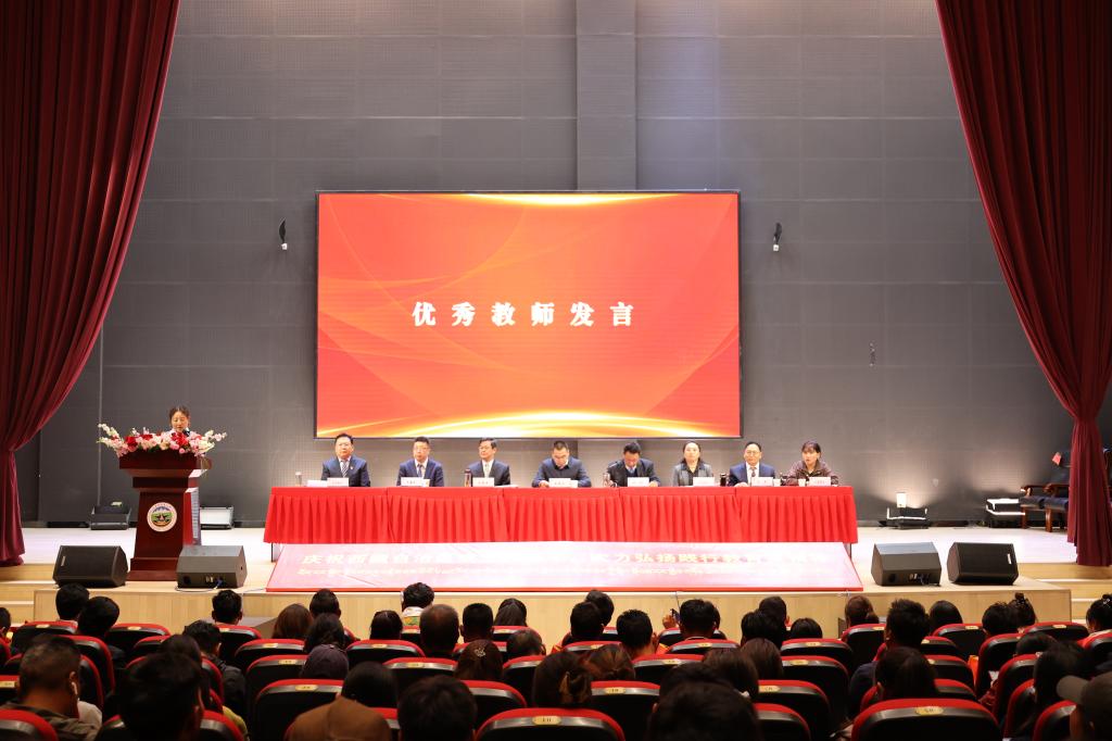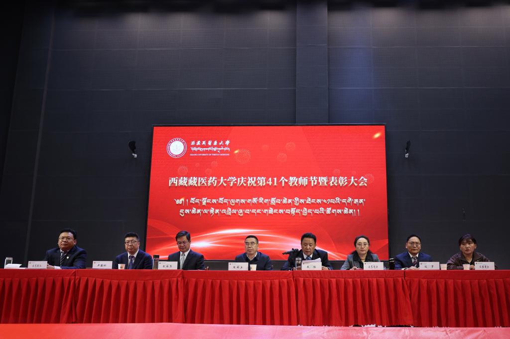 桃李芬芳传薪火,感念师恩润心田。9月10日下午,西藏藏医药大学举行庆祝第41个教师节暨表彰大会,对一年来学校教育教学、科学研究、教育管理各项工作中涌现出的先进个人及集体予以表彰。校党委书记鞠明兵出席会议并讲话,校党委副书记、校长米玛主持会议,在家校领导、全体教职工及学生代表齐聚一堂,庆祝教育工作者共同的节日。