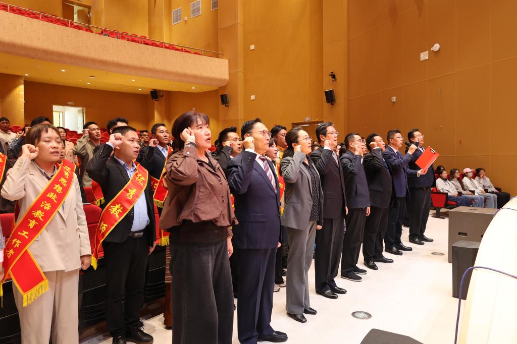大会在激昂的《国歌》声中拉开帷幕,全体教职工进行了庄严宣誓,对2024 - 2025学年涌现出的优秀教师、优秀教育工作者、优秀思想政治教育工作者、教学名师、师德标兵及先进集体共50名教职工和3个集体予以隆重表彰。会上还向教龄达到30年教师、光荣退休教职工、西藏藏医药大学2025年度校级教学竞赛获奖教师等敬献哈达、鲜花,颁发荣誉证书。